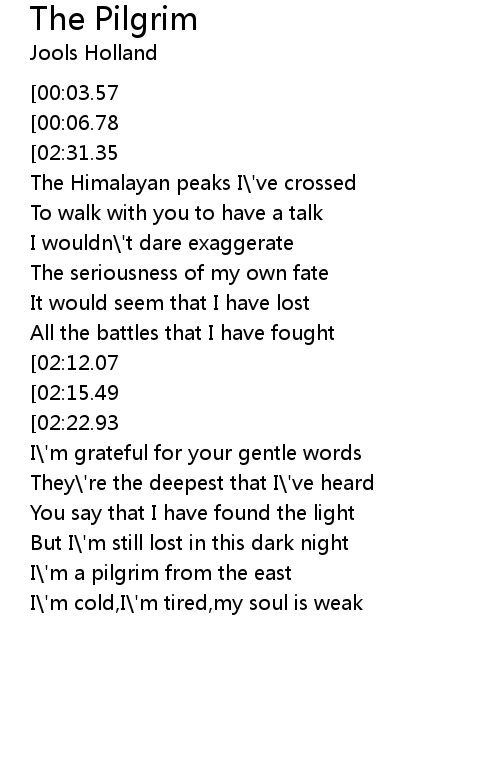 | [01:58.34] | I' m a pilgrim from the east |
