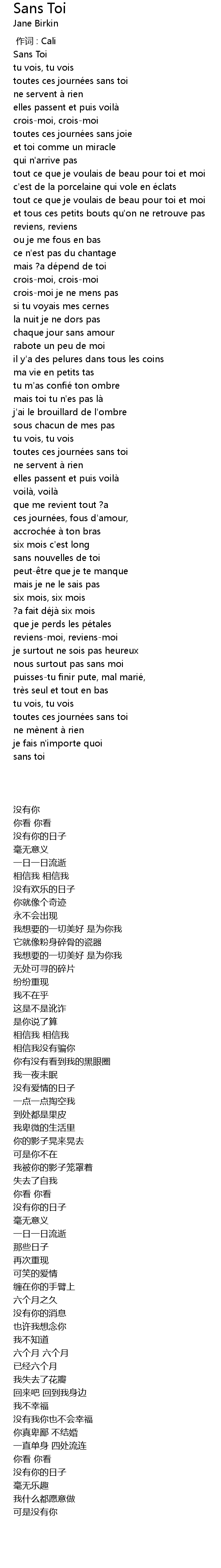 | 歌曲 | Sans Toi |