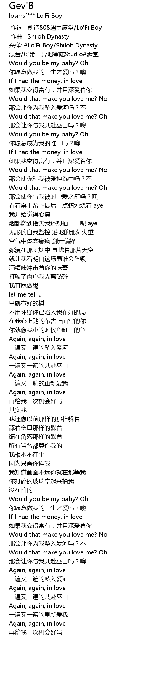 | [00:02.11] | 采样: #Lo'Fi Boy/Shiloh Dynasty |