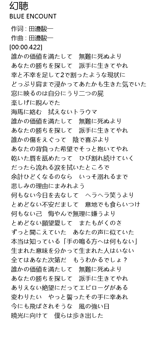 | [00:00.000] | 作词 : 田邊駿一 |