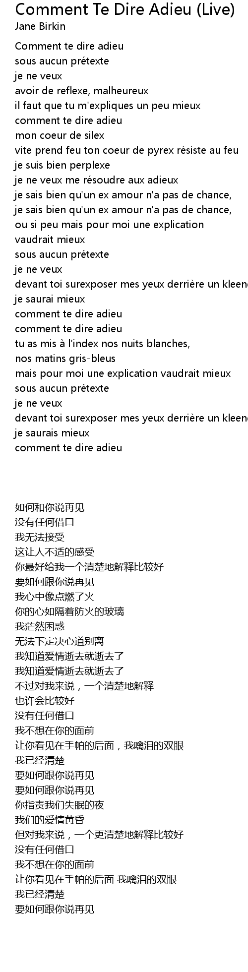 | 歌曲 | Comment Te Dire Adieu (Live) |