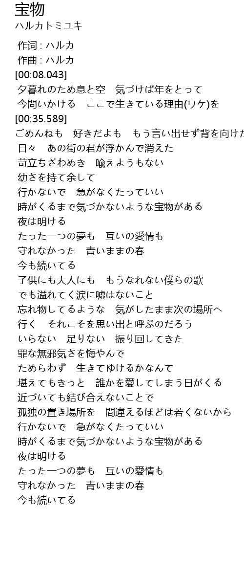 | [04:44.688] | 時がくるまで気づかないような宝物がある |