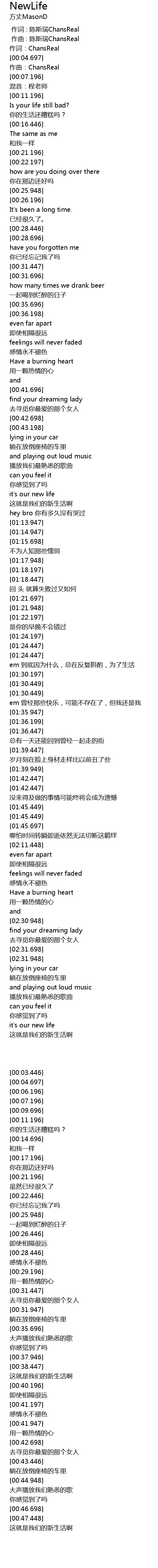 | [03:17.449] | zhe jiu shi wo men de xin sheng huo a |