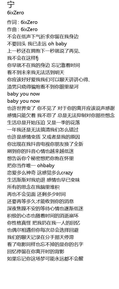 | 作词 : 6ixZero | |