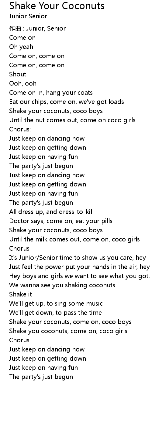 | Shake your coconuts, come on, coco boys | |