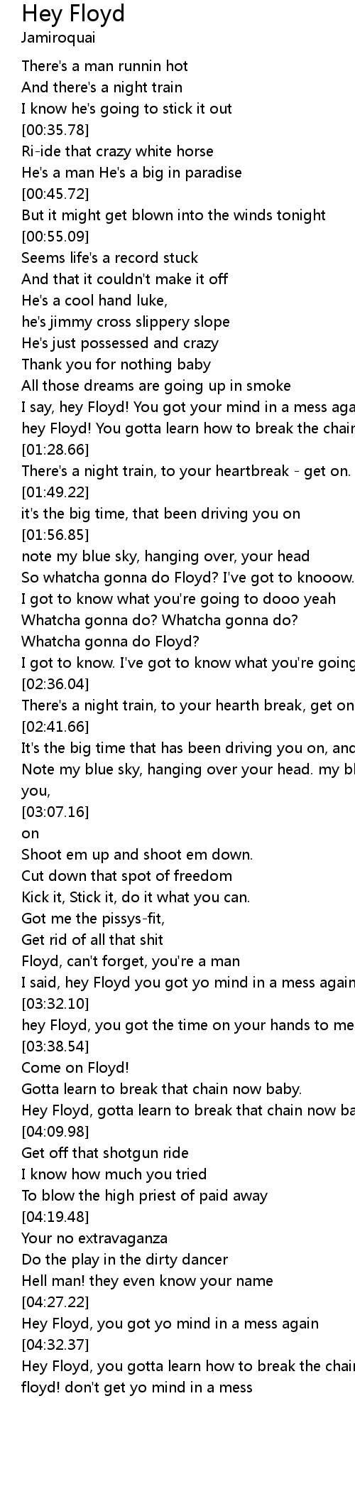 [01:13.47] I say, hey Floyd! You got your mind in a mess again