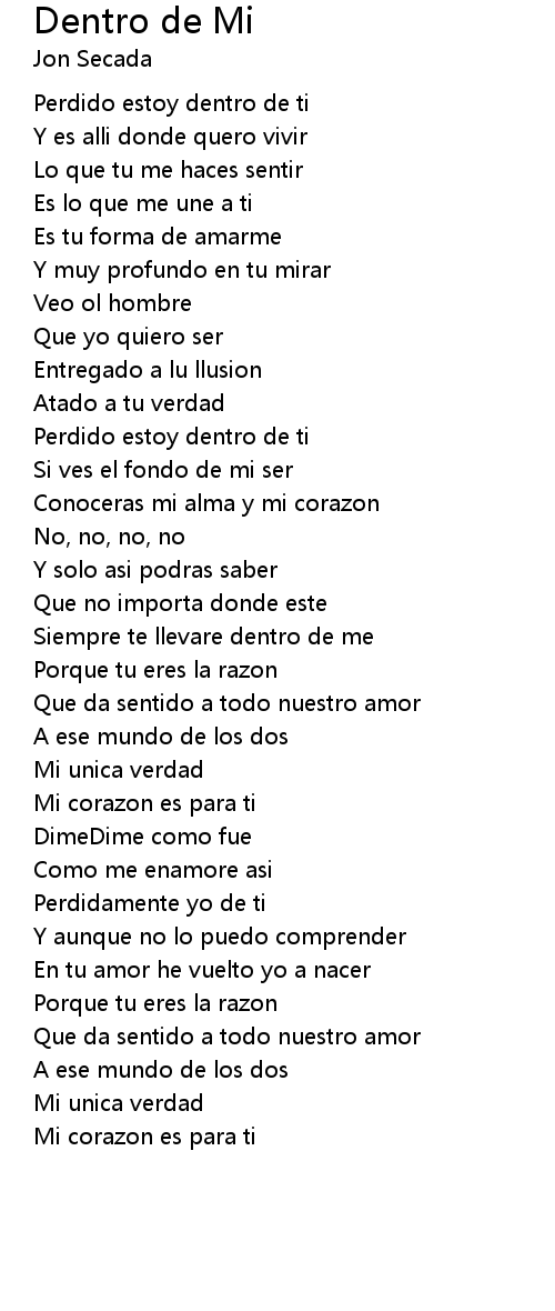 Dentro de Mi 歌词
