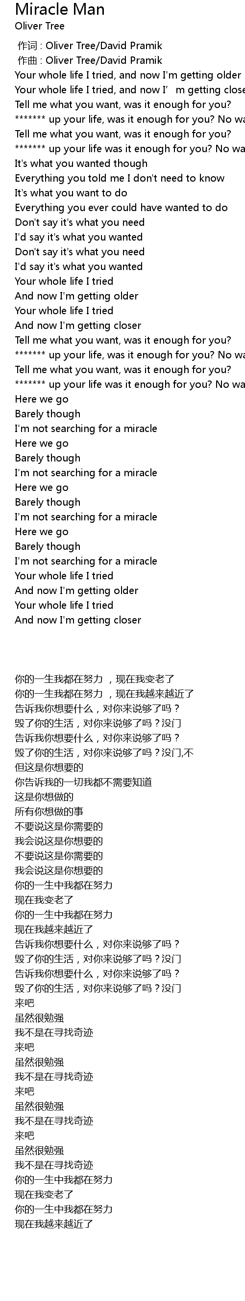 | [00:00.000] | zuo ci : Oliver Tree David Pramik |