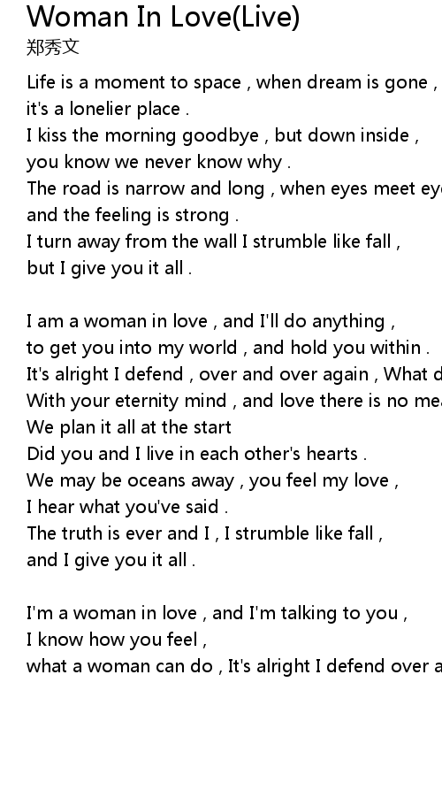 | I am a woman in love , and I'll do anything , | |