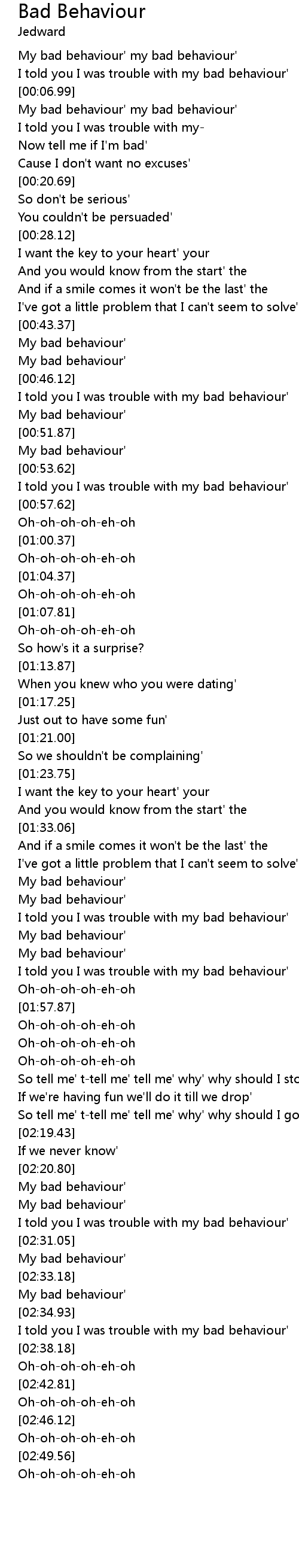 | [00:01.92] | My bad behaviour' my bad behaviour' |