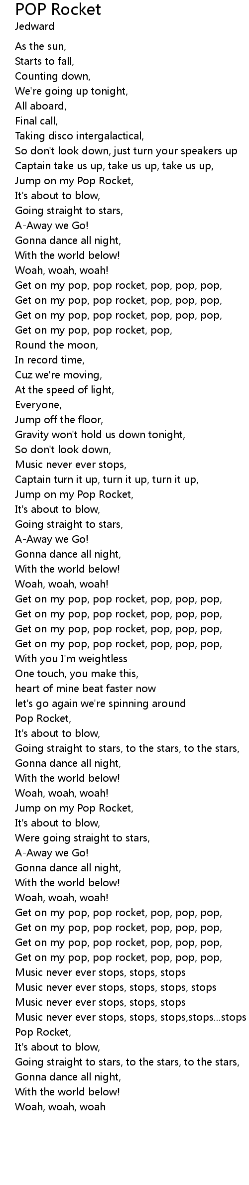 | [02:37.35] | Get on my pop, pop rocket, pop, pop, pop, |