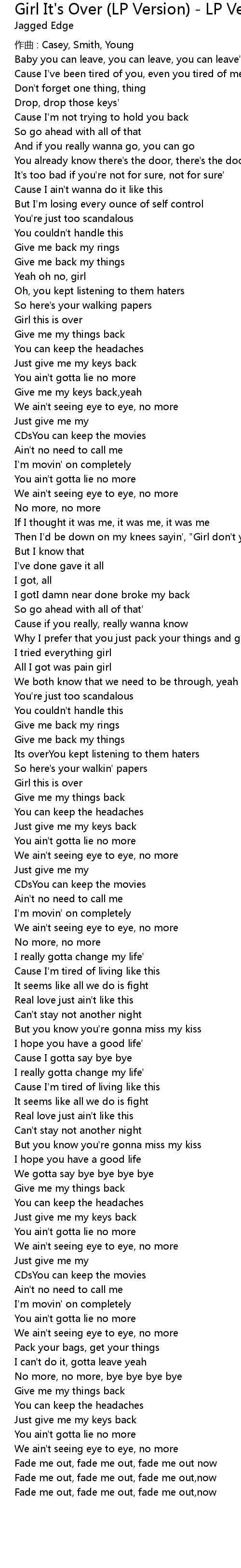 | 歌曲 | Girl It's Over (LP Version) - LP Version |