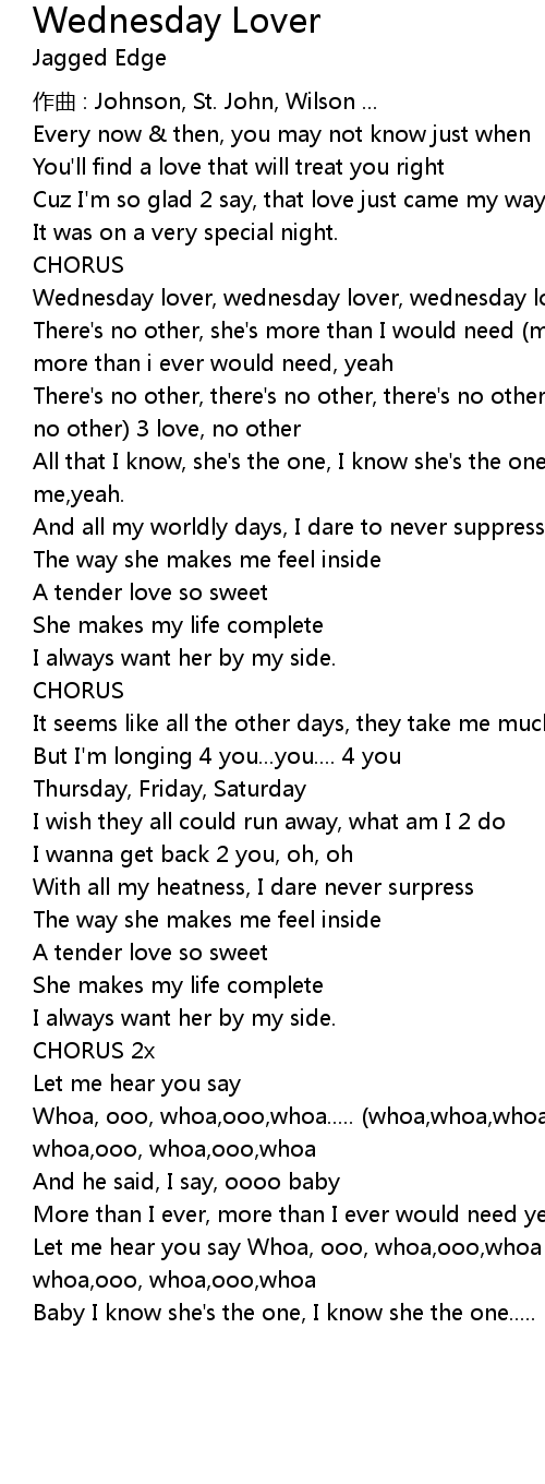 | Wednesday lover, wednesday lover, wednesday lover | |