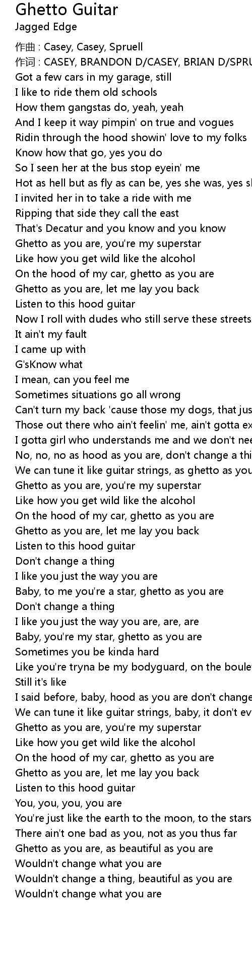 | Baby, to me you're a star, ghetto as you are | |