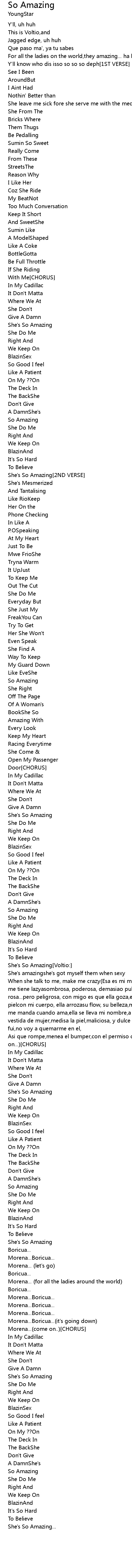 When she talk to me, make me crazy(Esa es mi mami)(That's my baby)me tiene loco, me tiene lazyasombrosa, poderosa, demasiao puluminosa, muy hermosa...como rosa...pero peligrosa, con migo es que ella goza,es la cosa..., cuando su pielcon mi cuerpo, ella arrozasu flow, su belleza,me encanta como besa,me manda, me manda cuando ama,ella se lleva mi nombre,a un sitio a otro hombre,y te habla vestida de mujer,medisa la piel,maliciosa, y dulce como la miel,si en ella feliz fui,no voy a quemarme en el, |