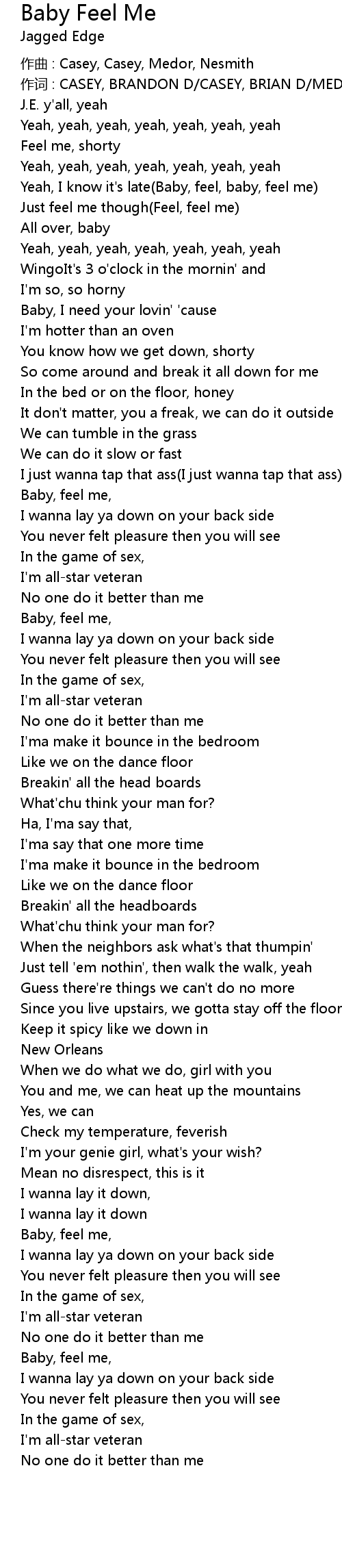 | Yeah, I know it's late(Baby, feel, baby, feel me) | |
