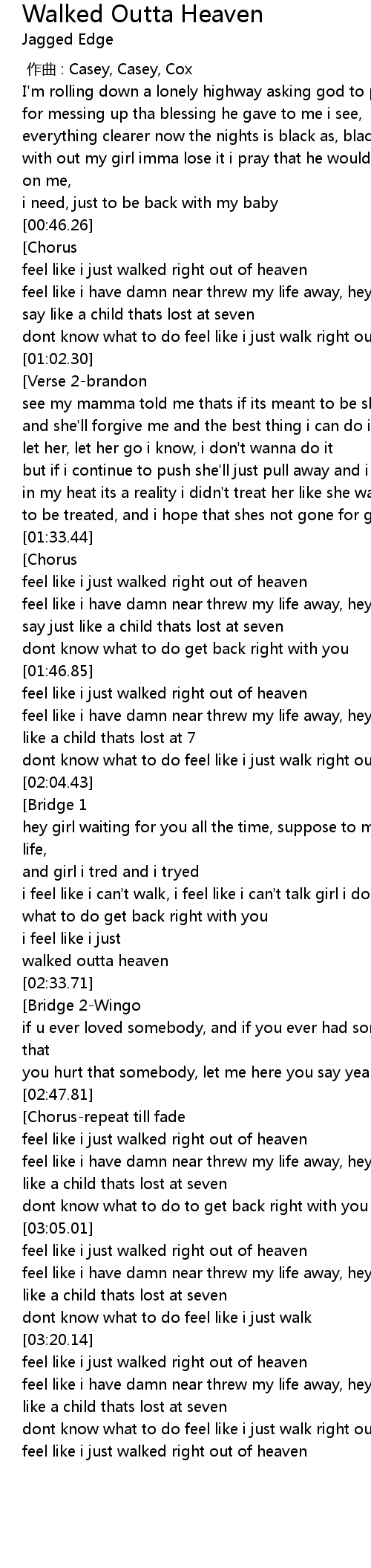 | [03:37.78] | feel like i just walked right out of heaven |