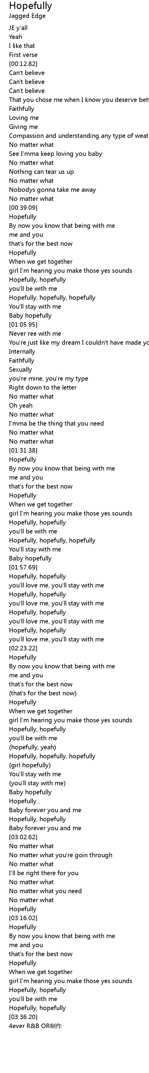 | [02:42.84] | Hopefully, hopefully, hopefully |