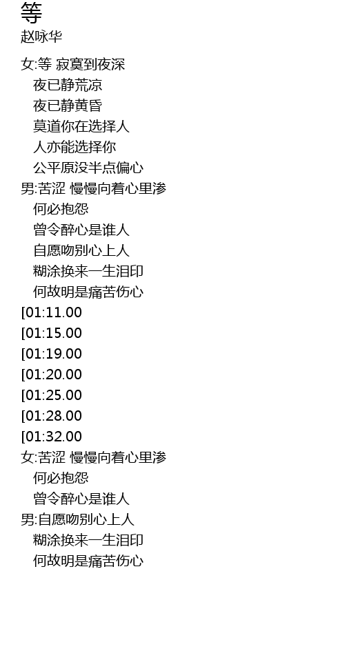 [00:16.00] nǚ: děng jì mò dào yè shēn