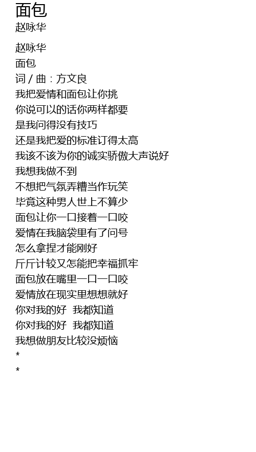 | wǒ bǎ ài qíng huó miàn bāo ràng nǐ tiāo | |