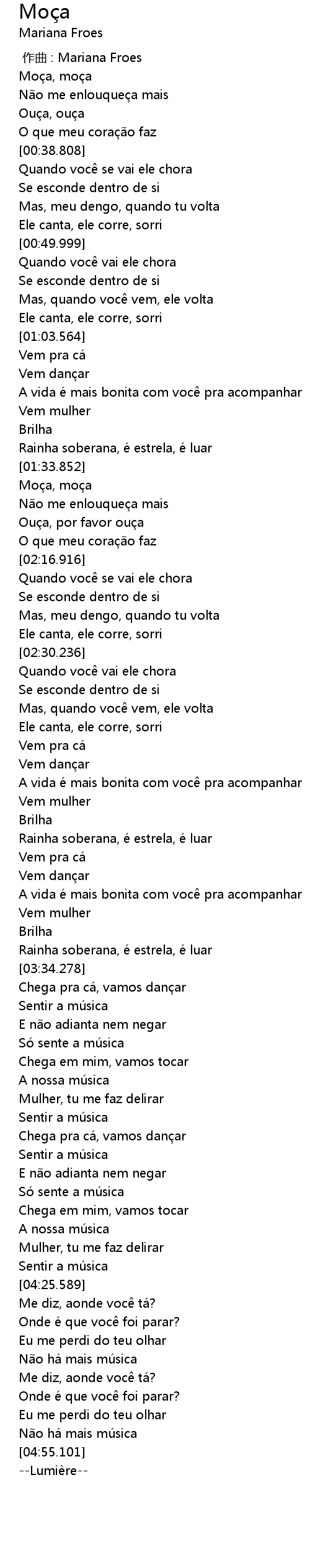 | [00:00.000] | zuò qǔ : Mariana Froes |