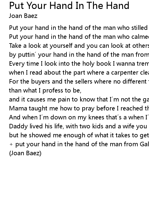 | put your hand in the hand of the man from Galilee. | |
