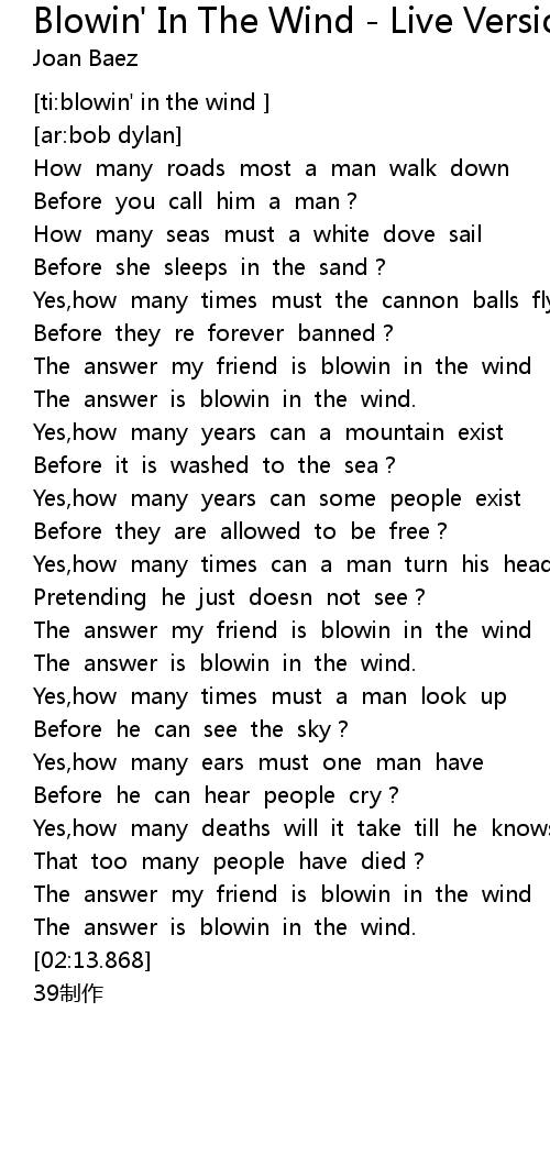 | [00:33.837] | The answer my friend is blowin in the wind |