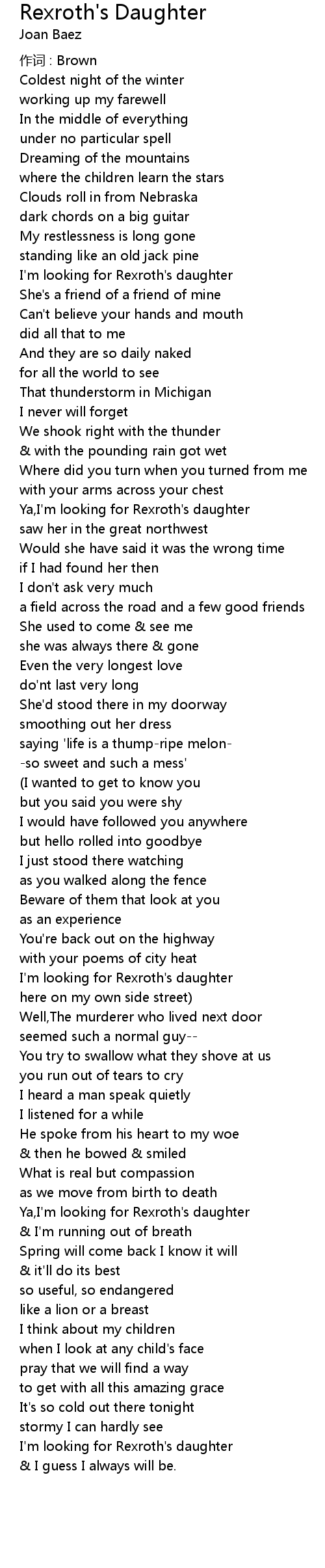 | 歌曲 | Rexroth's Daughter |