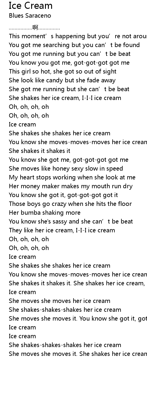| [03:16.490] | She moves she moves it. She shakes her ice cream, III ice cream |