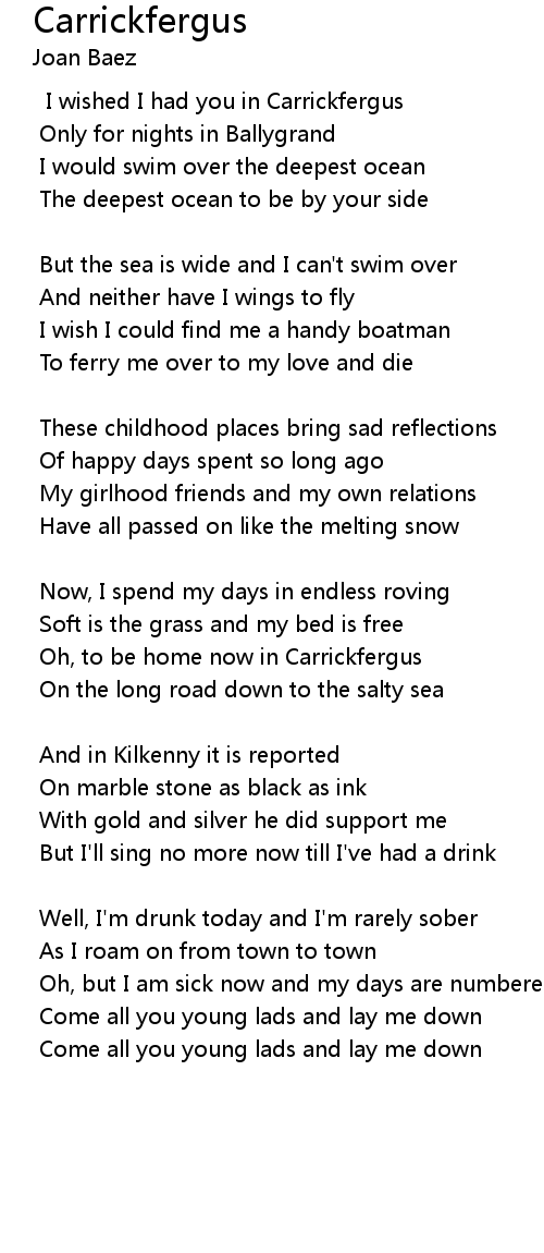 I wished I had you in Carrickfergus