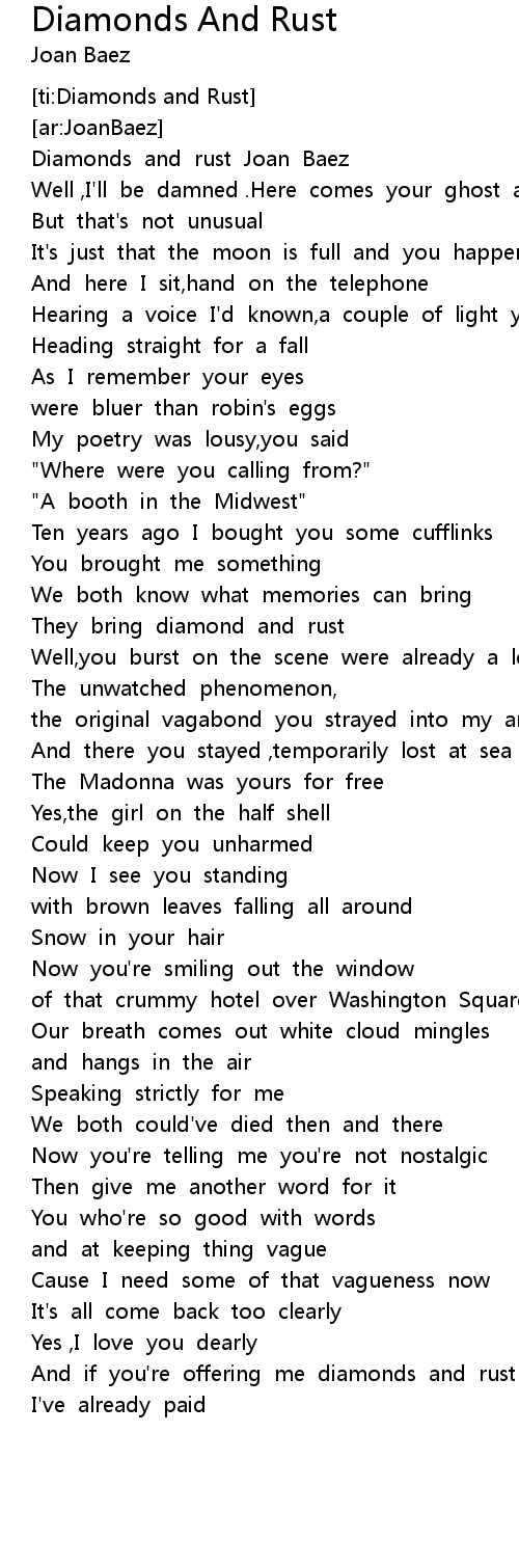 [00:12.63] Diamonds and rust Joan Baez