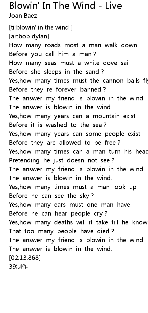 | [00:33.837] | The answer my friend is blowin in the wind |