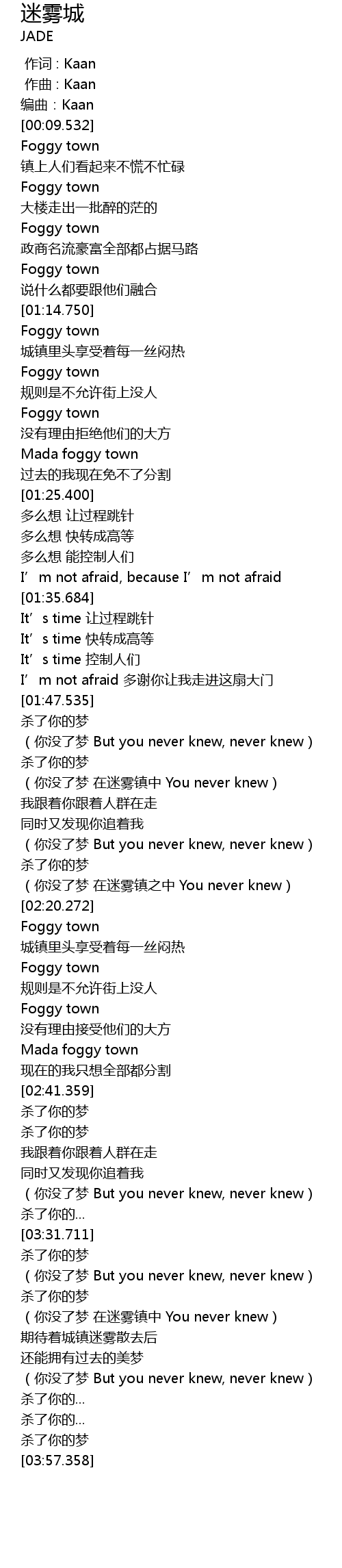 | [03:40.176] | (你没了梦 在迷雾镇中 You never knew) |