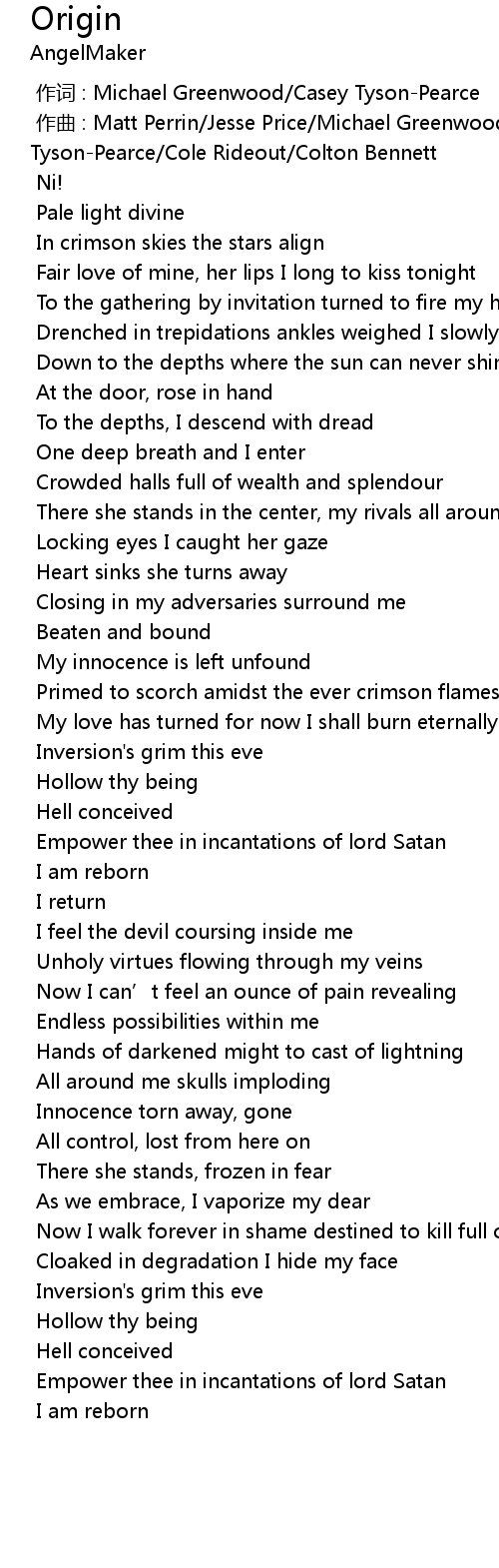 | [02:08.470] | Unholy virtues flowing through my veins |