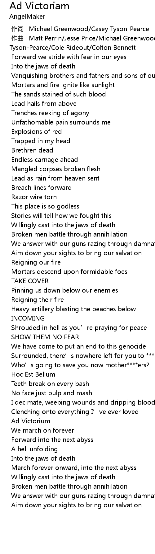 | [03:00.035] | March forever onward, into the next abyss |
