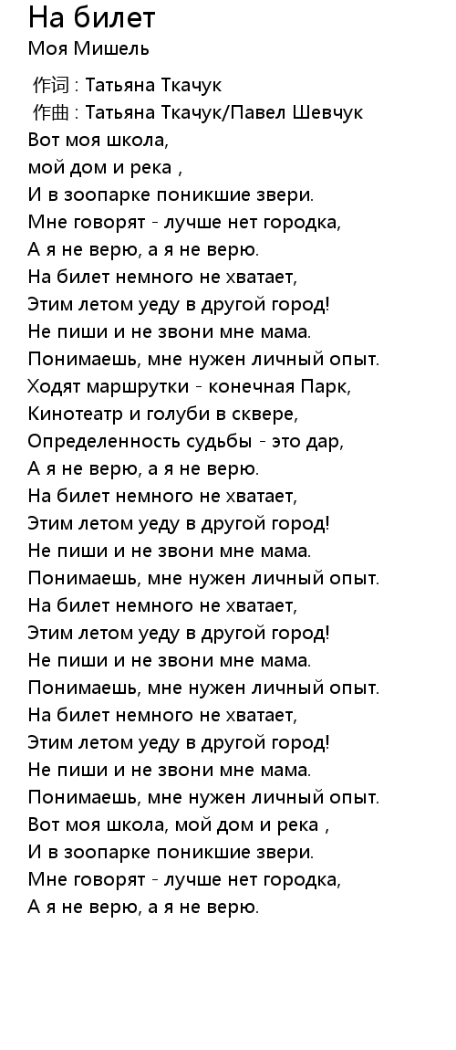 На билет 歌词