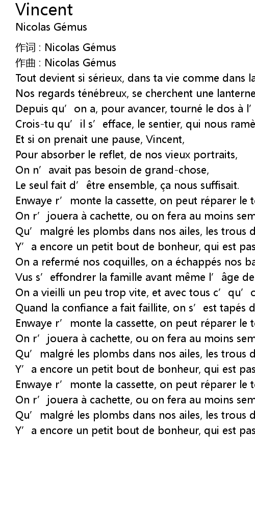 | 作词 : Nicolas Gémus | |