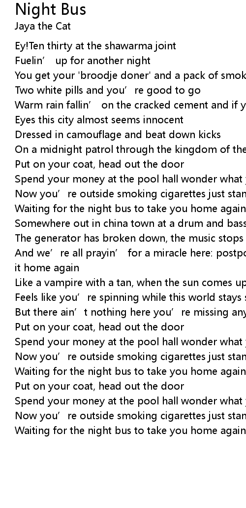 | And we’re all prayin’ for a miracle here: postpone the dawn before we make it home again | |