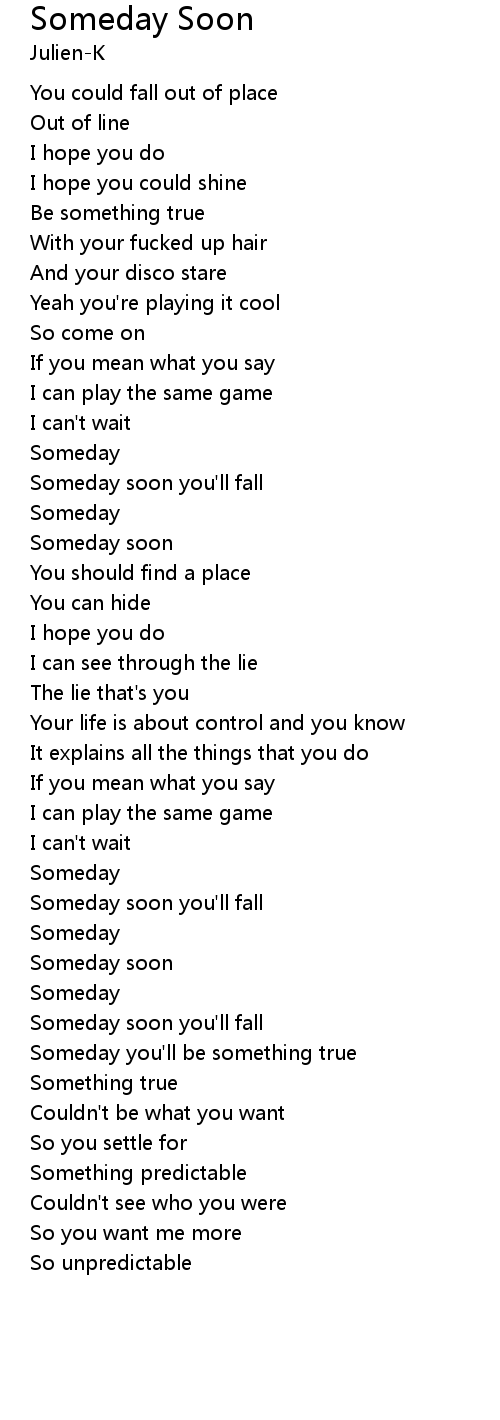 Someday soon you'll fall |