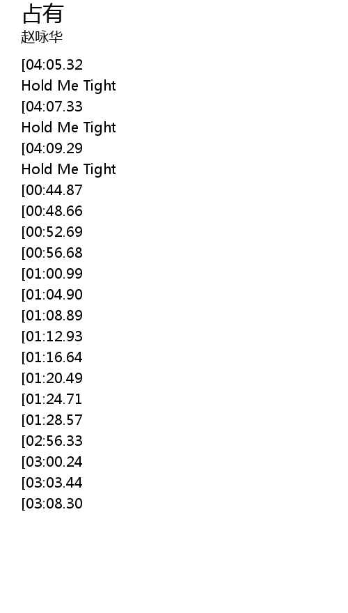| [03:37.74][03:03.44][01:40.84] | Oh My Love Just Hold Me Tight |