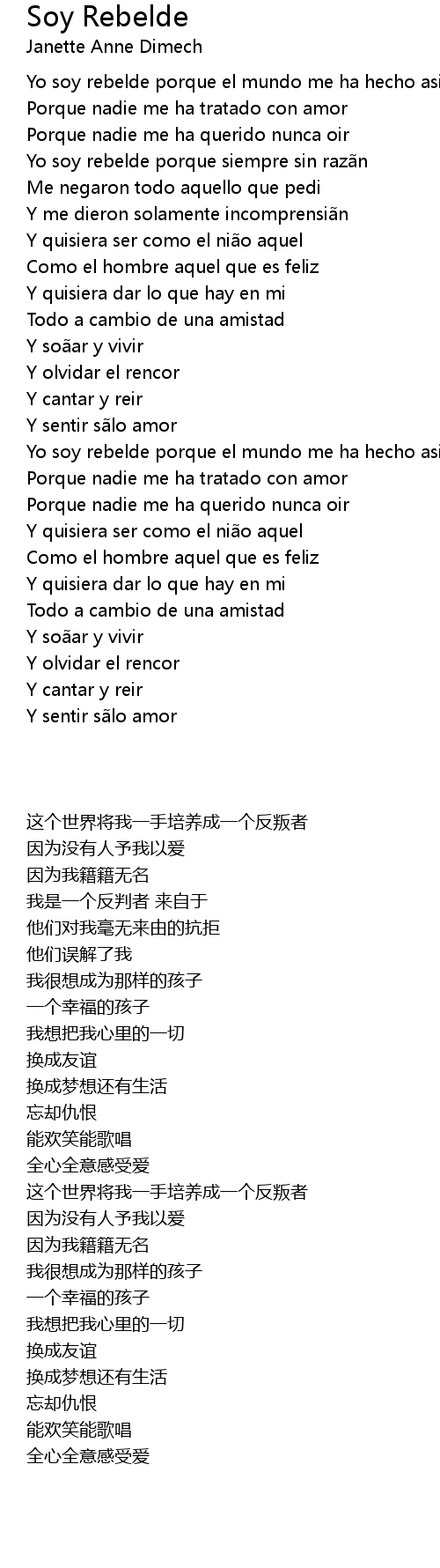 | [00:22.09] | Yo soy rebelde porque el mundo me ha hecho asi |