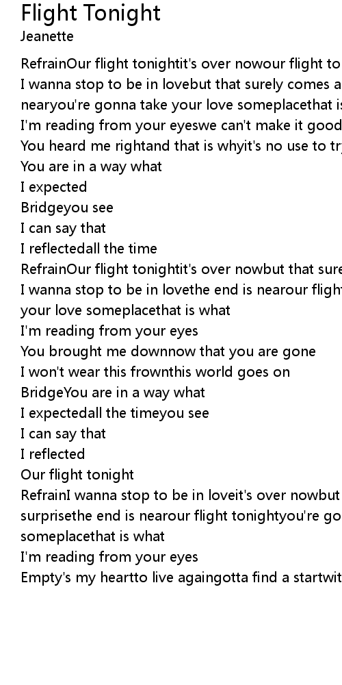 RefrainOur flight tonightit's over nowour flight tonight