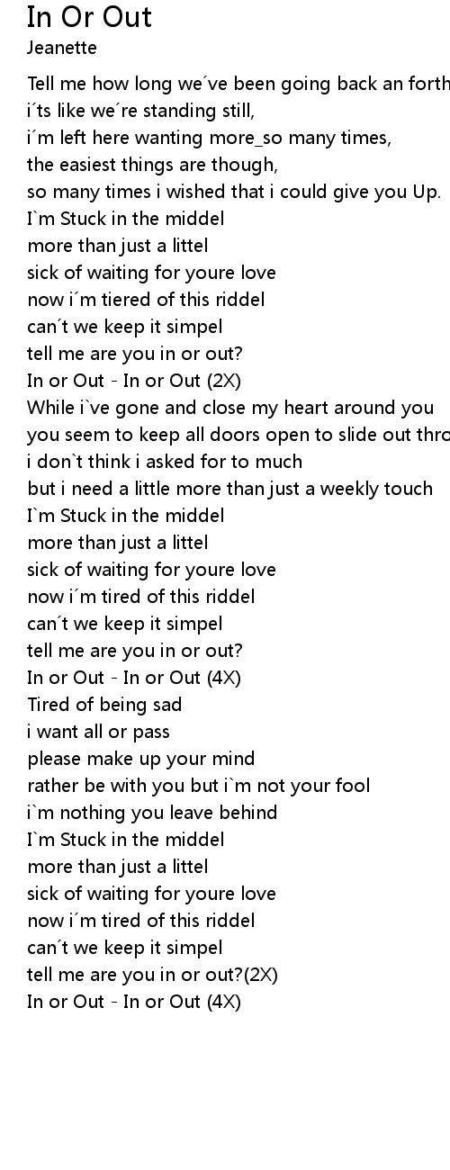 | tell me are you in or out?(2X) | |