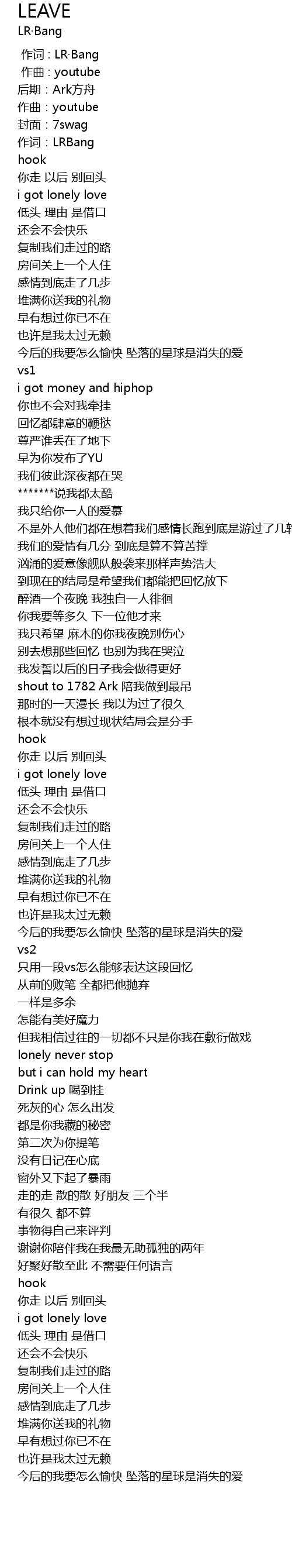 | [02:35.641] | nǐ zǒu yǐ hòu bié huí tóu |