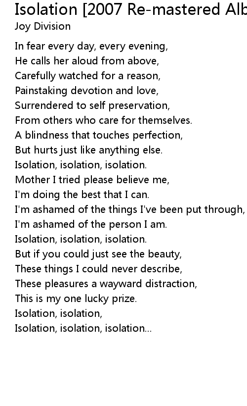 Isolation, isolation, |