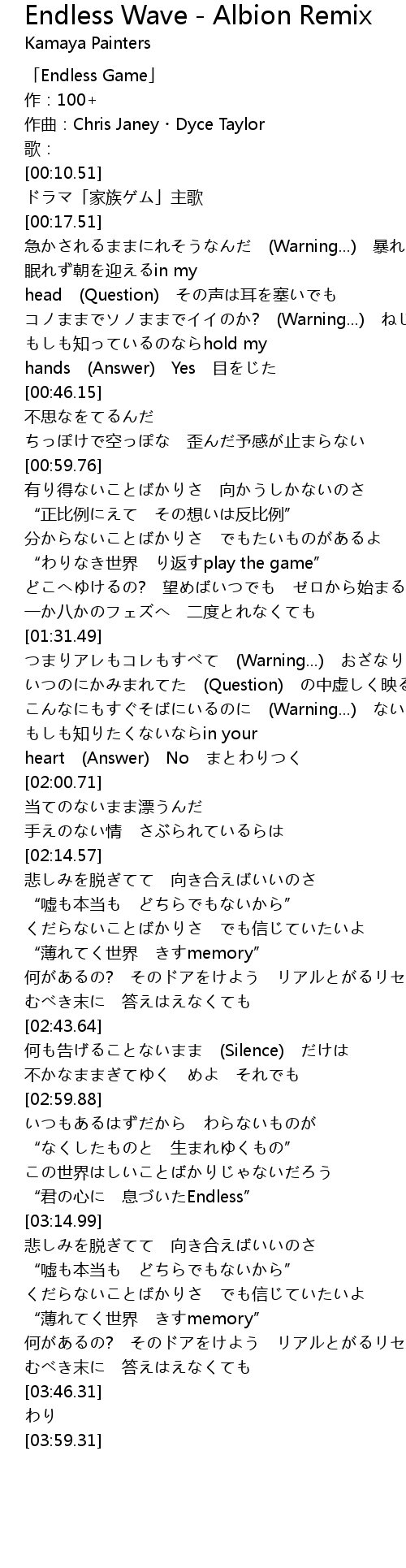 | [03:12.49] | “君の心に 息づいたEndless” |
