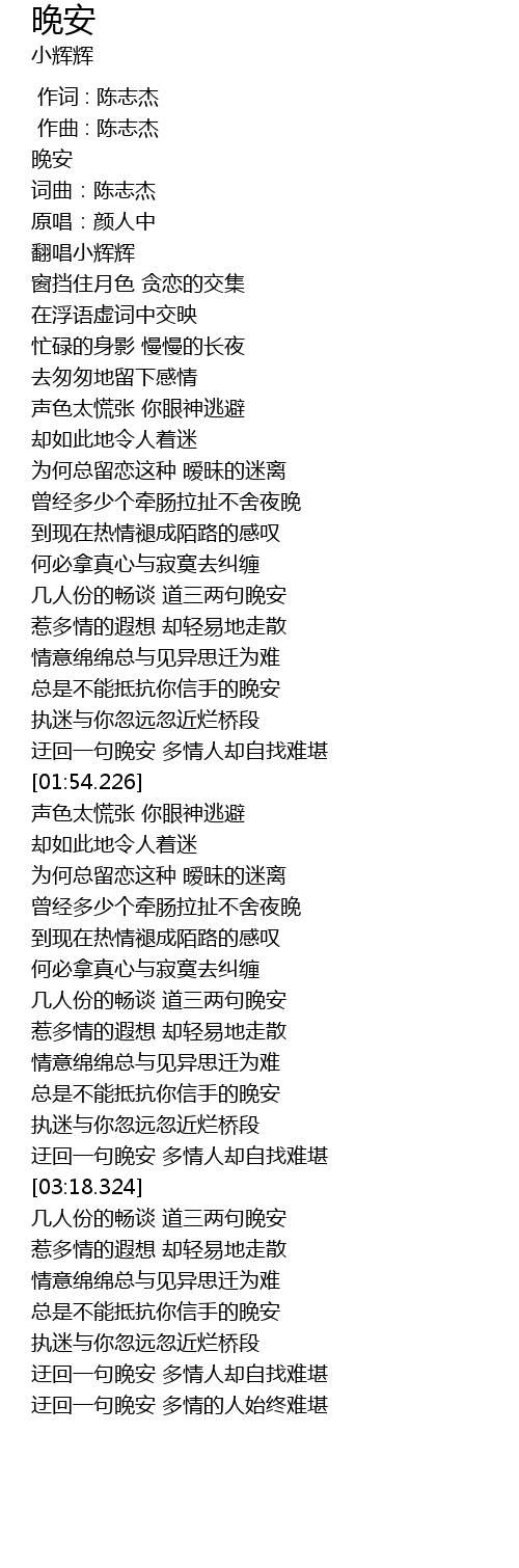 | [01:41.229] | 迂回一句晚安 多情人却自找难堪 |