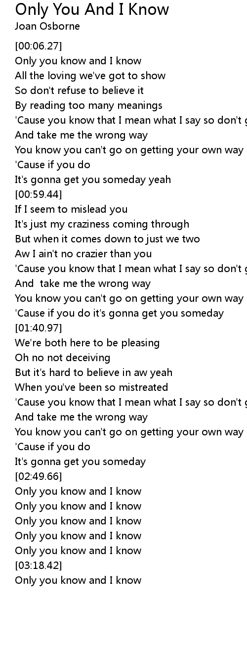 Only you know and I know |