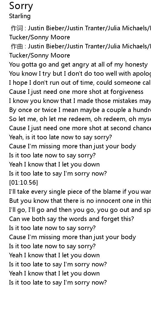| [01:08.48] | Is it too late to say I' m sorry now? |