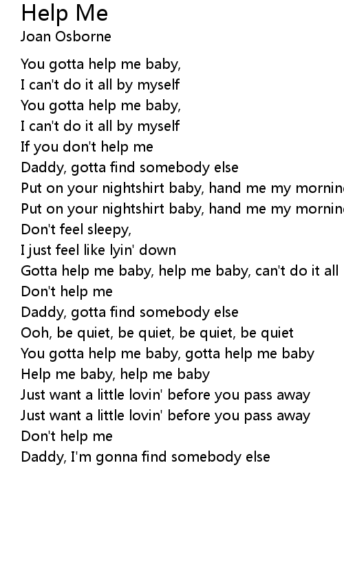 Gotta help me baby, help me baby, can't do it all by myself |